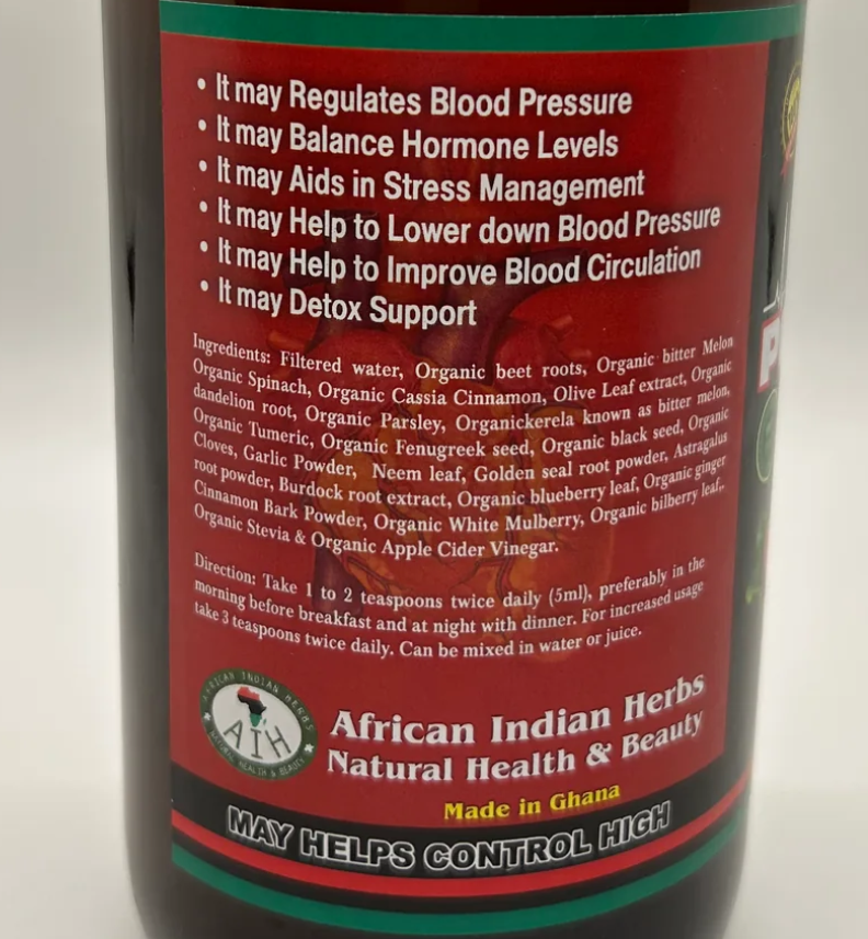 Ingredients : Filtered water, Organic beet roots, Organic biter Mean Organic Spinach, Organic Cassia Cinnamon, Olive Leaf extract, Organic dandelion root, Organic Parsley, Organic kerela known as bitter melon, Organic Tumeric, Organic Fenugreek seed, Organic black seed, Organic Cloves, Garlic Powder, Neem leaf, Golden seal root powder, Astragala root powder, Burdock root extract, Organic blueberry leaf, Organic ginger Cinnamon Bark Powder, Organic White Mulberry, Organic bilberry leaf,