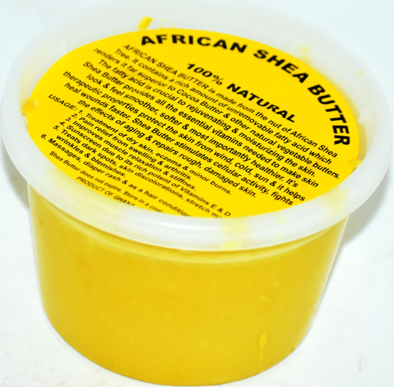 African shea butter is made from the nut of the African shea tree. It contains rich amount of unremovable fatty acid which renders it far superior cocoa butter and other natural vegetable butter. This fatty acid is crucial to rejuvenating and moisturizing the skin Shea butter provides all the essential vitamins needed to make skin look and feel smother, softer. Its therapeutic properties protect the skin from wind, cold and sun, it helps to heal wounds faster. Shea butter stimulates cellular activity, fights the effects of aging and repair rough and damage skin.